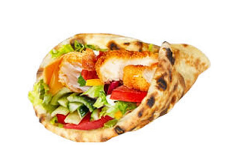 Poulet, mozza, lardon, 2 sauces au choix et crudités.